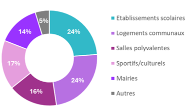 Du point de vue de la typologie des bâtiments rénovés, on retrouve surtout des établissements scolaires, des logements communaux et des équipements destinés à la population (salles polyvalentes, équipements sportifs et culturels).