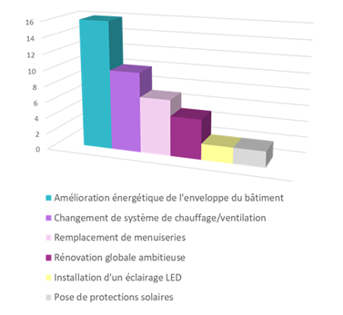 Enfin, pour la typologie des travaux, ils ont consisté, dans la grande majorité, en des travaux d'isolation et/ou en un changement de système de chauffage/ventilation.