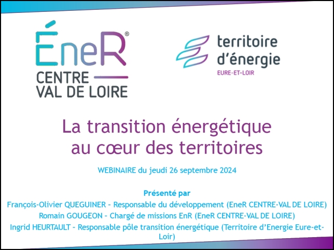 Jeudi 26 septembre, Territoire d'Énergie Eure-et-Loir organisait, en partenariat avec la SEM EneR CENTRE-VAL DE LOIRE, un webinaire destiné aux collectivités afin de présenter nos solutions en matière de production d'électricité photovoltaïque.